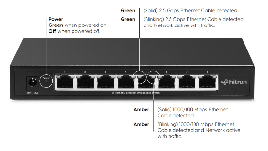 - Green (Solid): 2.5 Gbps Ethernet cable detected